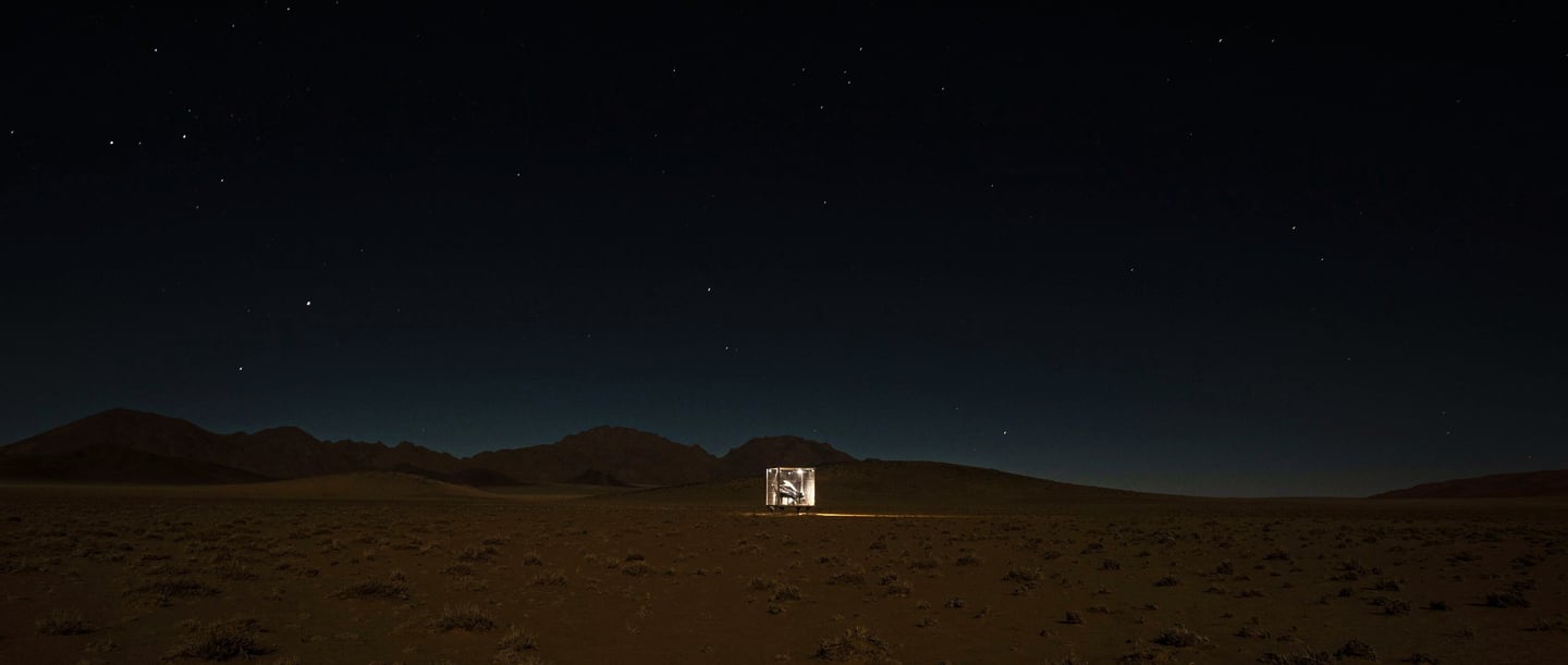 Seine erste Reise führt ihn und seinen Flügel nach Namib. Ein Ort scheinbarer Leere – um Raum für Antworten zu schaffen.